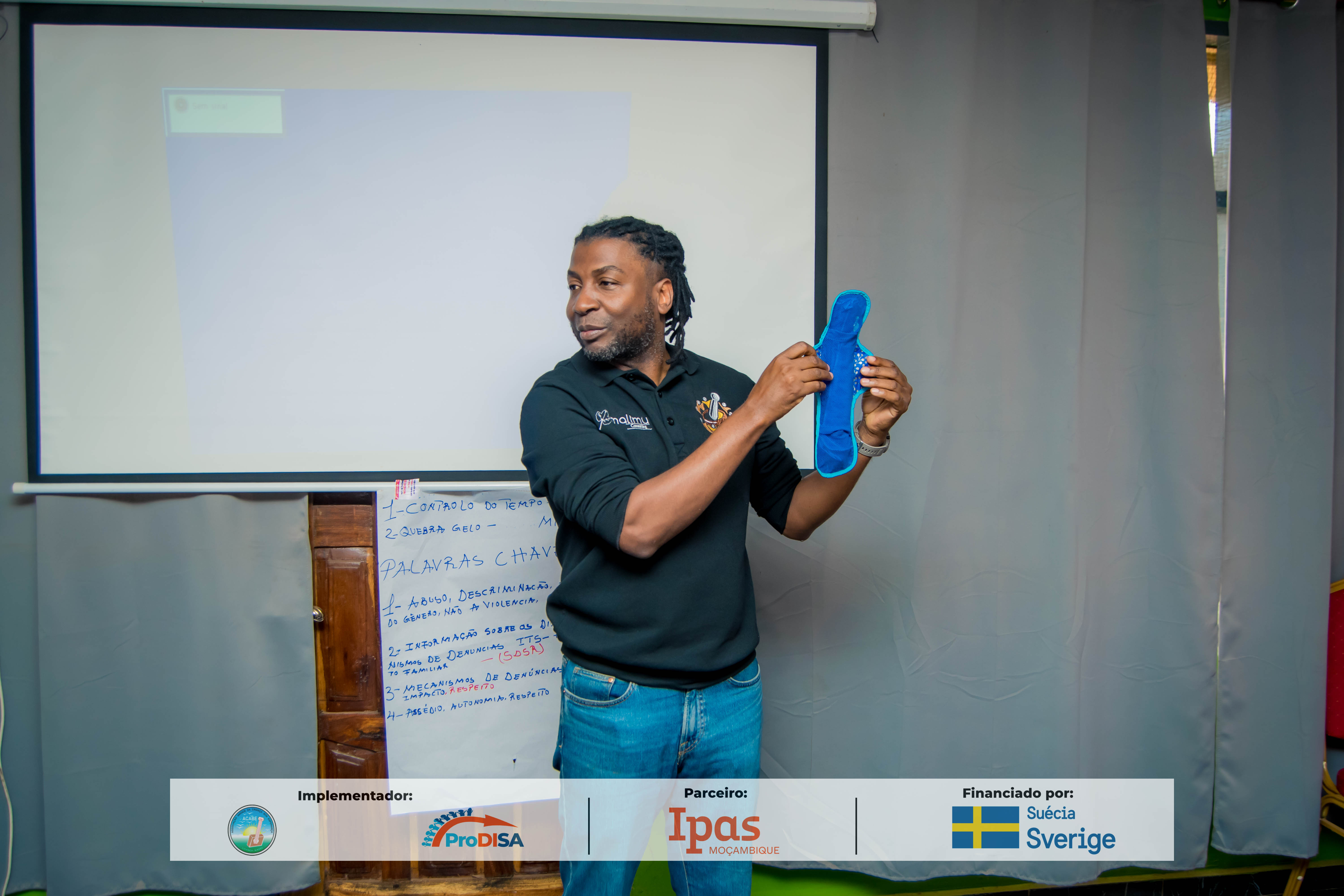 Ao longo da formação, os profissionais adquiriram conhecimentos sobre direitos, barreiras e abordagens inclusivas, protocolos de atendimento e confidencialidade, uso e aconselhamento sobre pensos higiénicos reutilizáveis, escuta activa e promoção de escolhas informadas.